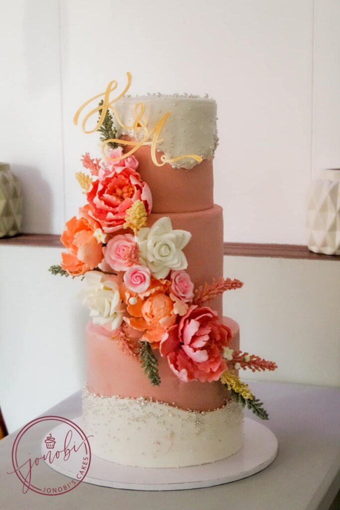 Beautiful barrel-style cakes suitable for weddings, engagements, and romantic celebrations. Designed with elegant finishes, floral accents, and personalized toppers.