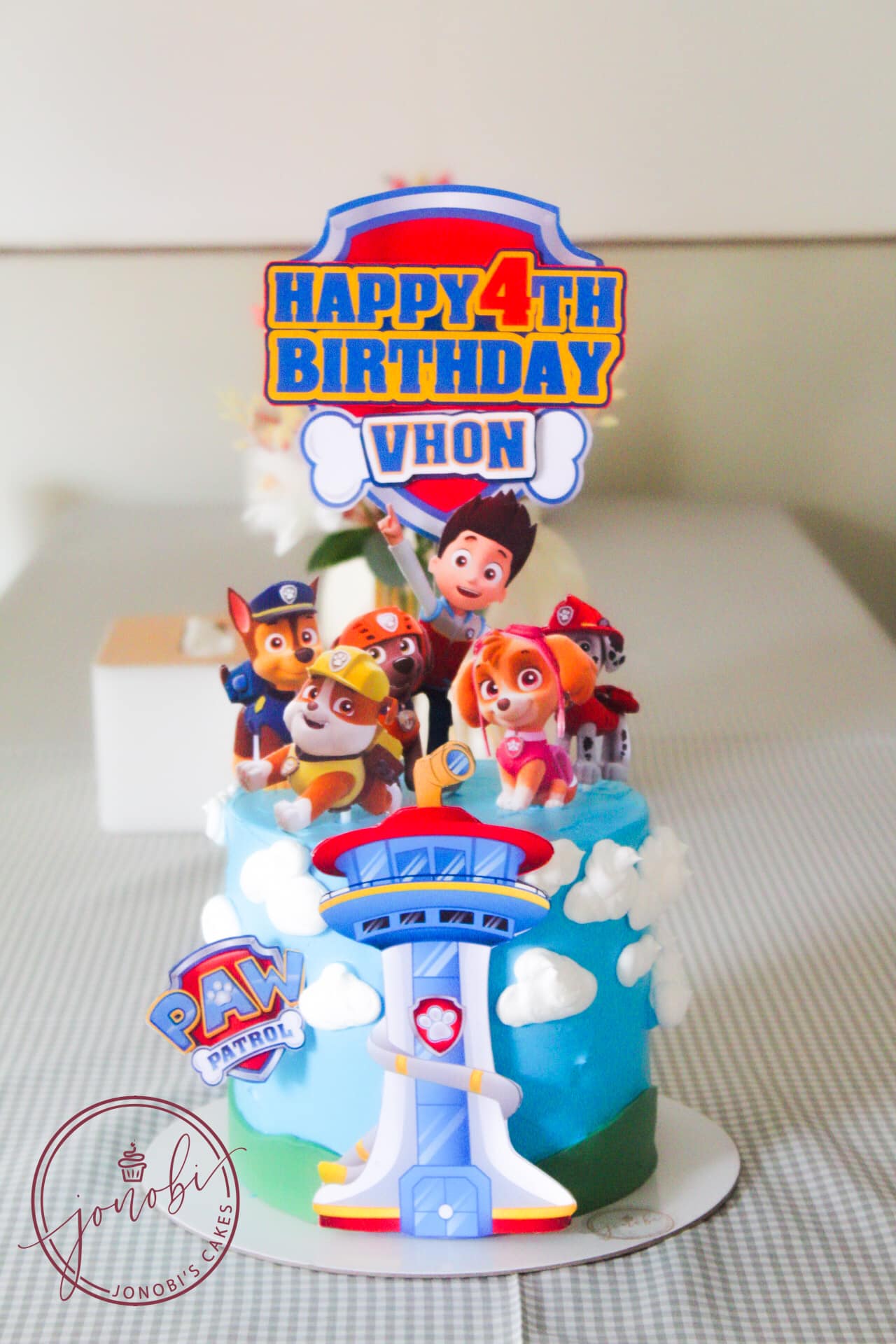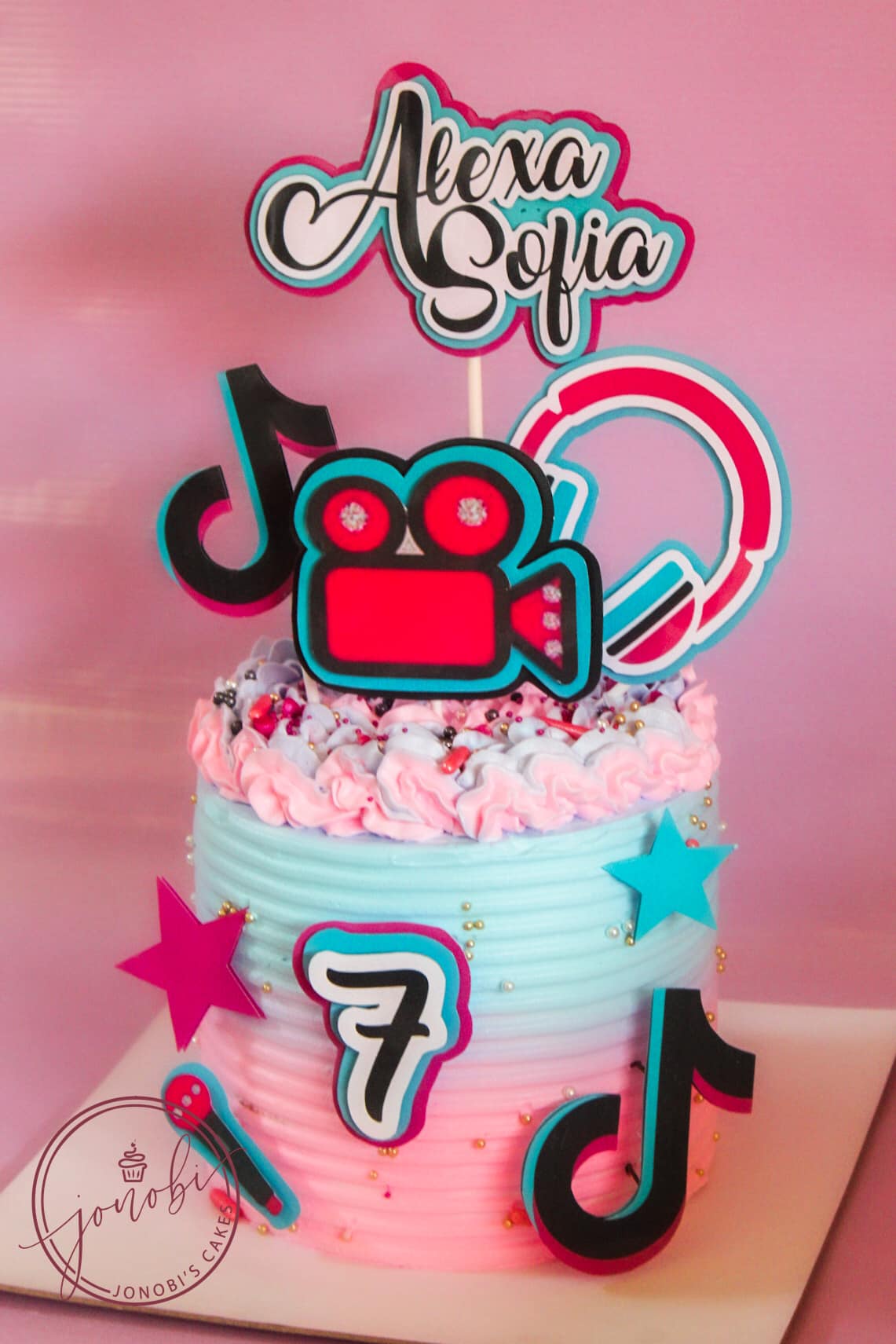 Barrel cakes decorated with custom printed toppers featuring characters, photos, or themed graphics. Perfect for birthdays and themed celebrations where a personalized cake topper adds a fun and memorable touch.