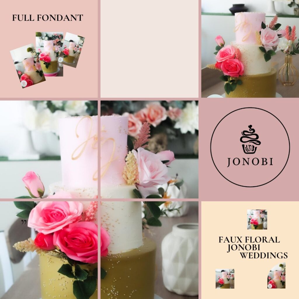 Our custom-designed cakes feature high-quality faux flowers