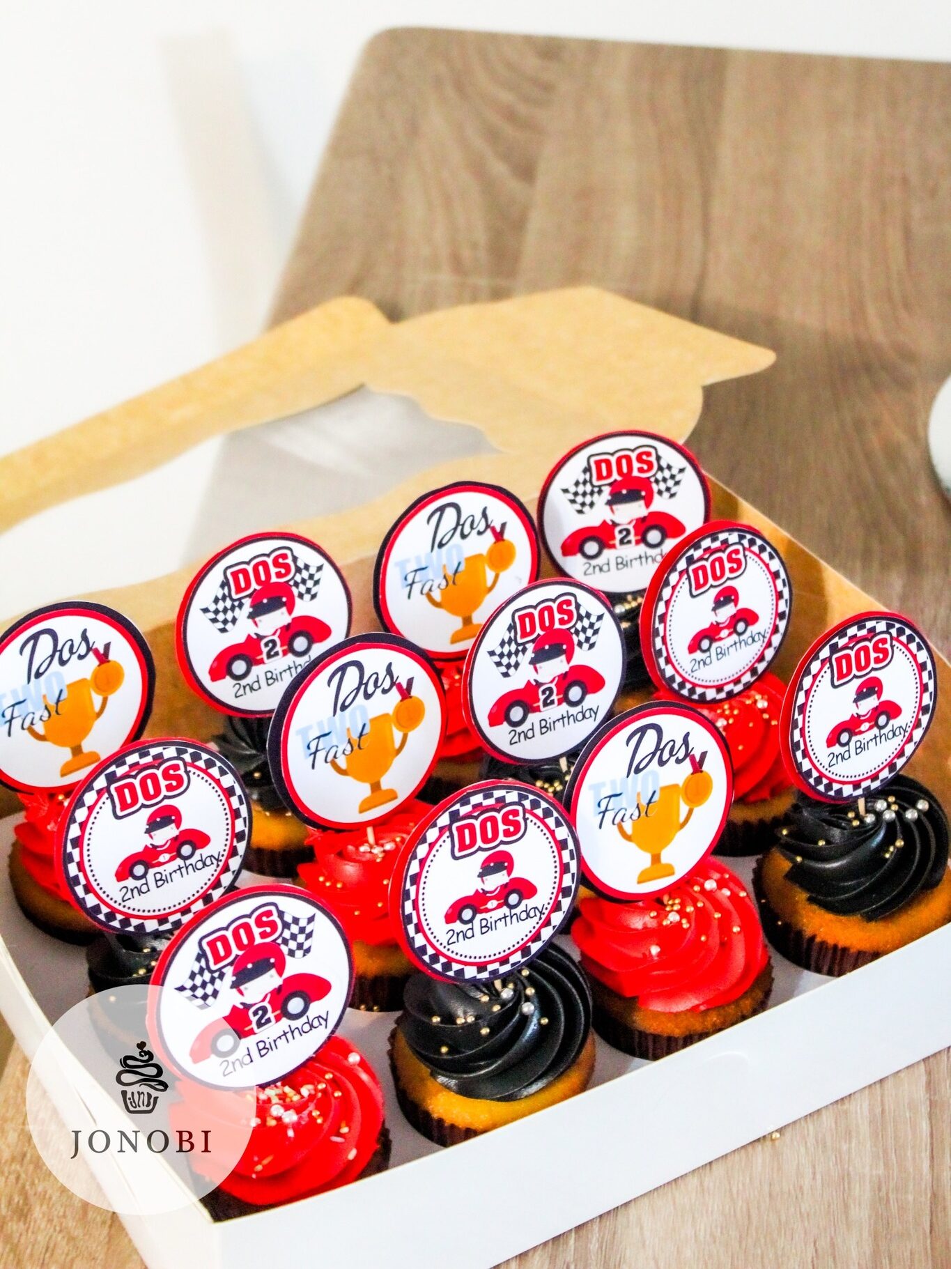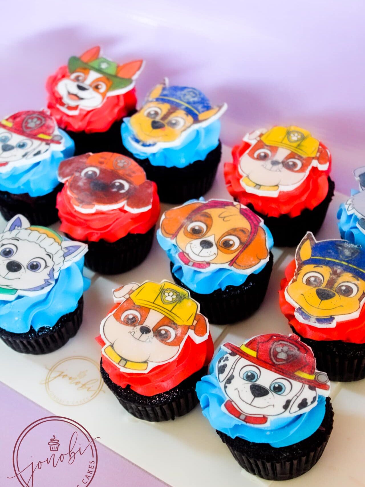 Custom cupcakes with edible printed toppers, ideal for birthdays, milestones, and themed celebrations.