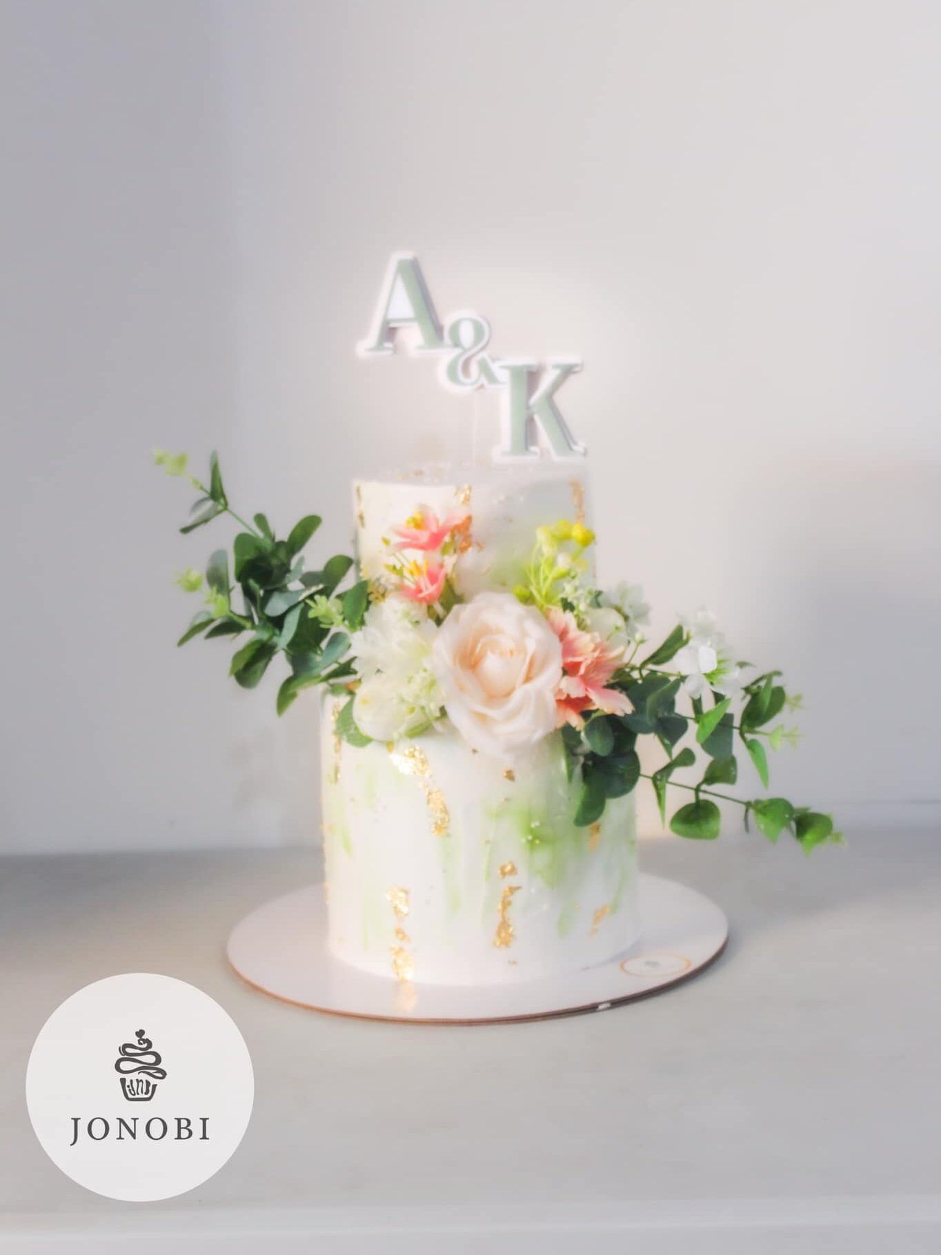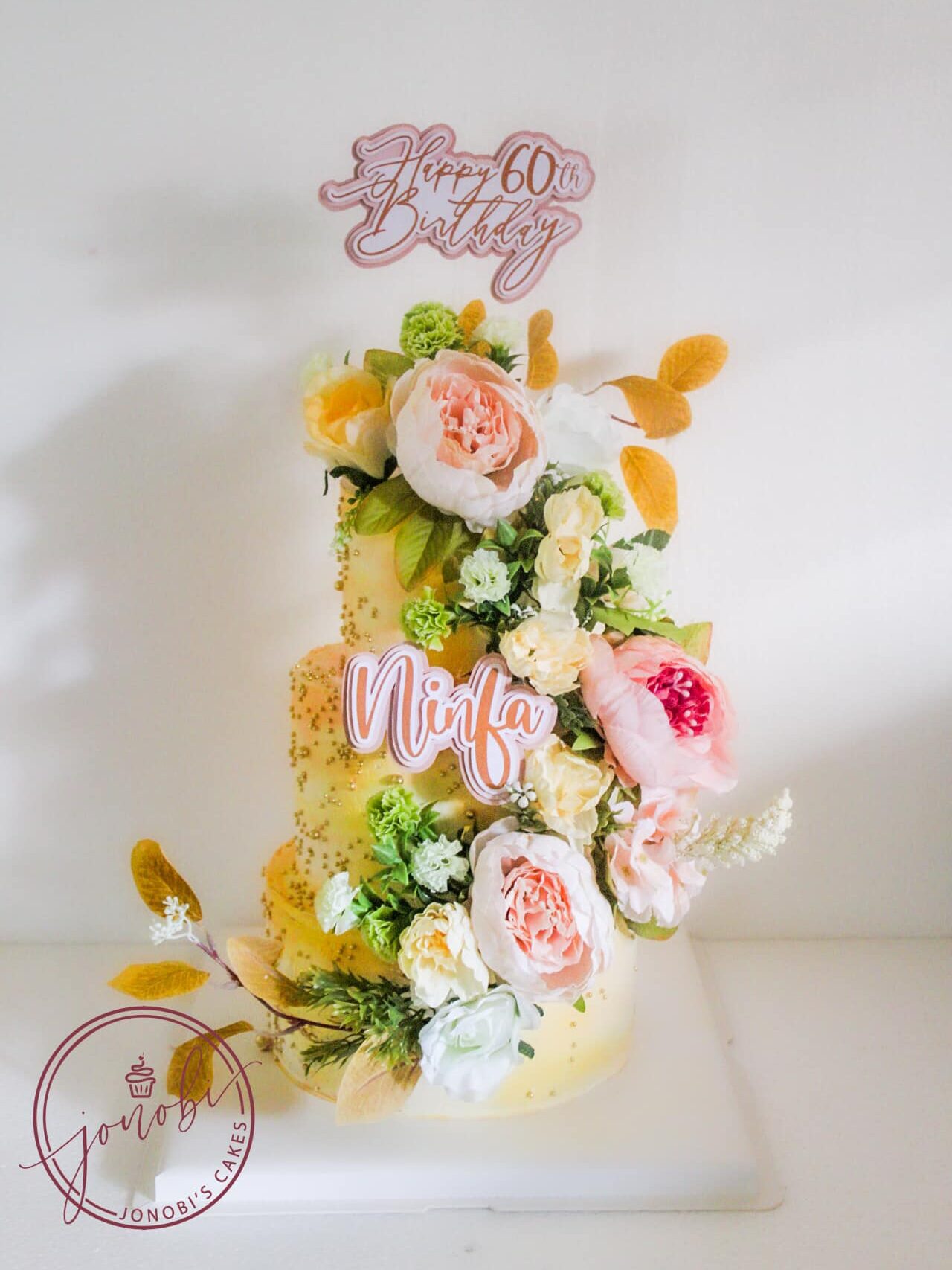 Tier cakes styled with fresh, faux, or dried floral elements.