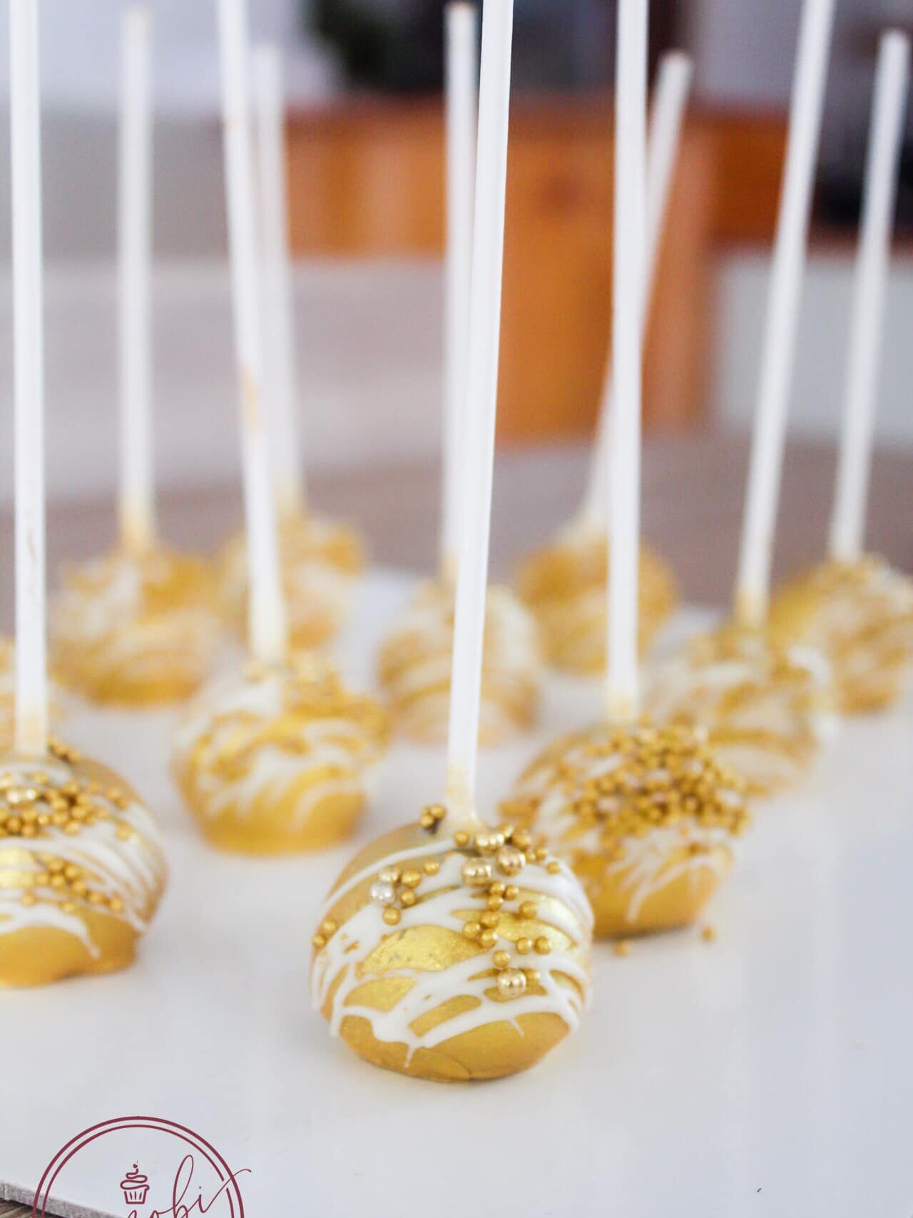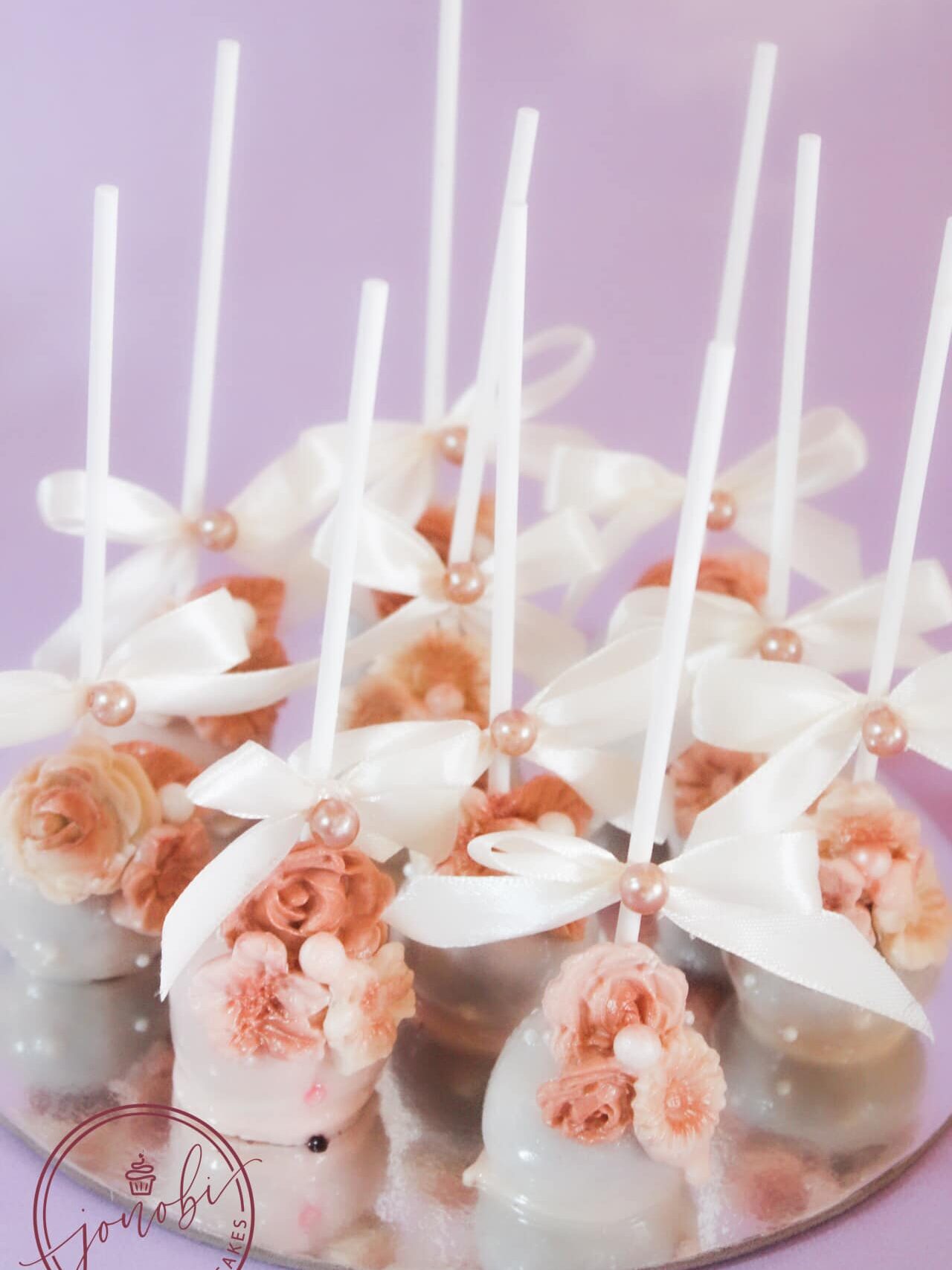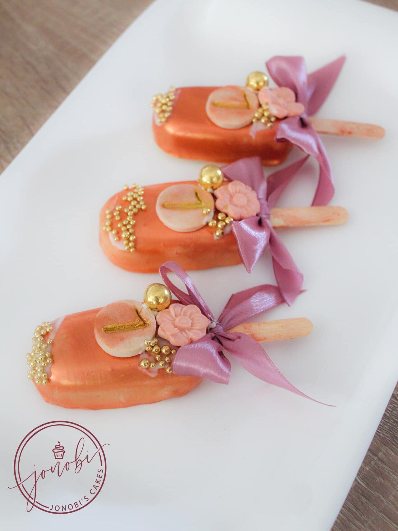 Refined cake popsicles finished with smooth chocolate and delicate details.